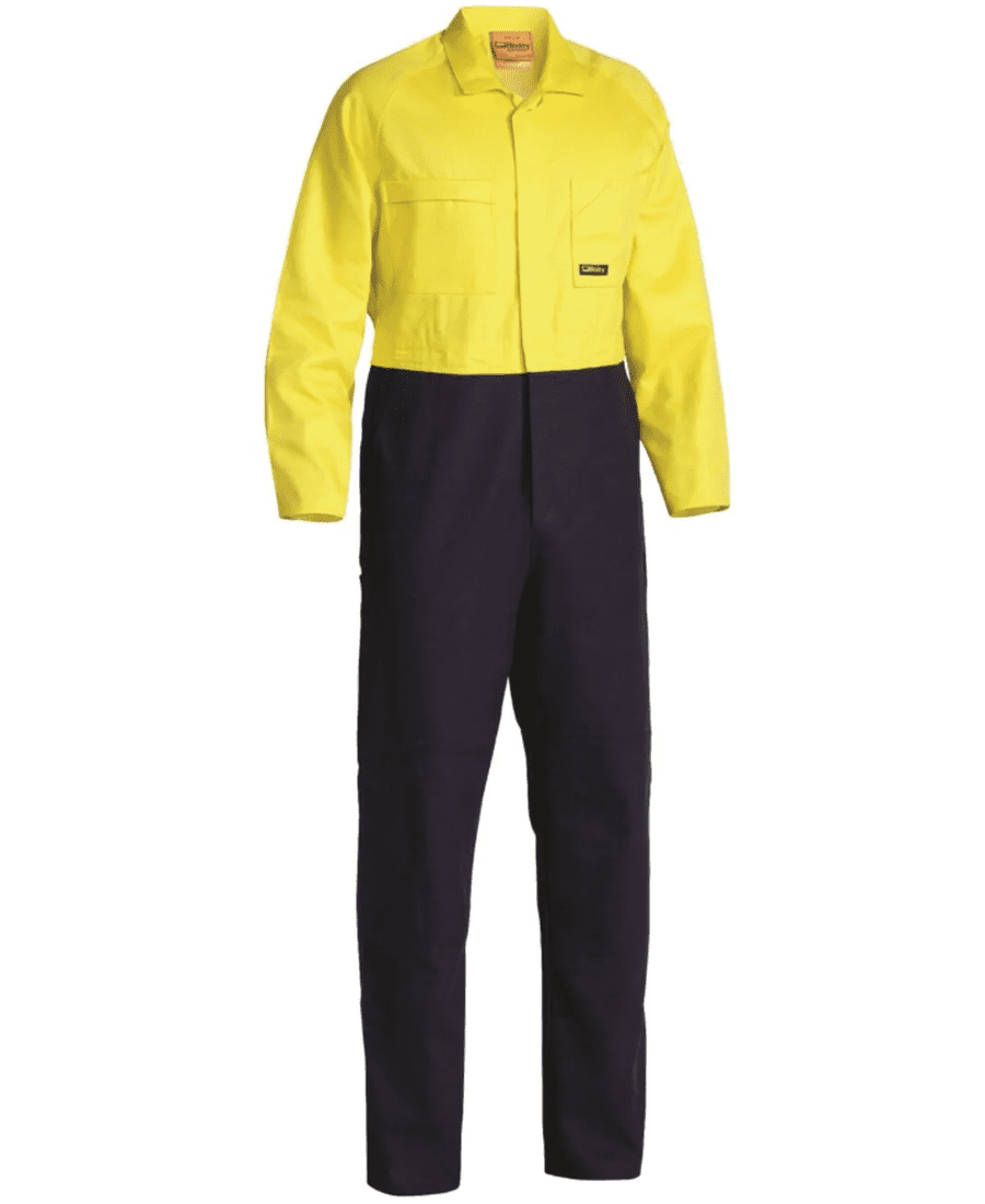 Bisley BC6357 Cotton Drill Overalls Hi Vis Yellow/Navy