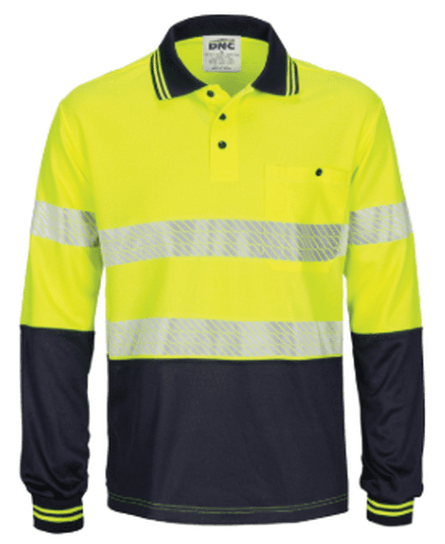 DNC Hi-Vis Polyester Two-Tone Long Sleeve Polo – Yellow/Navy