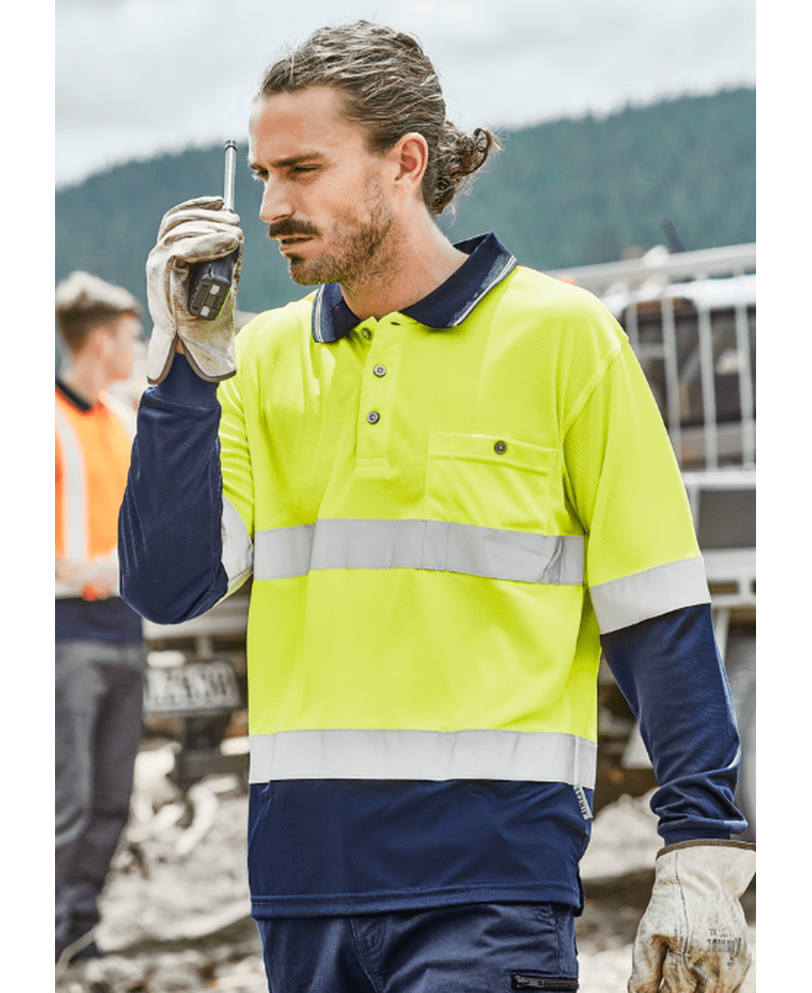 Syzmik ZH235 Men’s Hi Vis Spliced Long Sleeve Polo (Hoop Taped) – Yellow/Navy
